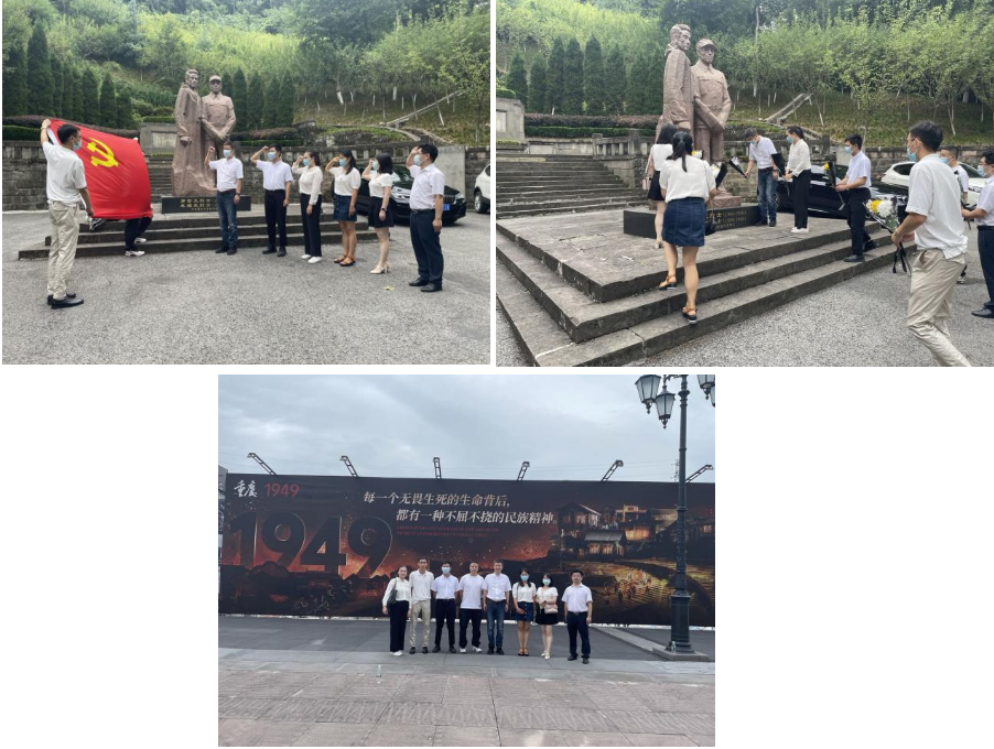 活動(dòng)簡(jiǎn)介:為推動(dòng)黨史學(xué)習(xí)教育常態(tài)化長(zhǎng)效化,引導(dǎo)全體黨員牢記黨的宗旨、珍惜黨員身份、永葆先進(jìn)本色,7月22日,規(guī)劃發(fā)展部黨支部組織開(kāi)展“追尋紅色記憶,傳承革命精神”主題黨日活動(dòng)。全體黨員前往紅巖文化景區(qū)歌樂(lè)山松林坡參觀學(xué)習(xí),以重溫入黨誓詞和獻(xiàn)花儀式表達(dá)對(duì)英雄們深切的懷念及崇高的敬意?;顒?dòng)還組織觀看了歷史舞臺(tái)劇《重慶·1949》?;顒?dòng)成效:此次活動(dòng)讓黨員們?cè)趨⒂^學(xué)習(xí)的過(guò)程中深入了解了英雄烈士的革命事跡,通過(guò)豐富的歷史文物、詳實(shí)的文獻(xiàn)資料進(jìn)一步了解革命的艱苦歷程,追憶英雄們保家衛(wèi)國(guó)的豐功偉績(jī)。大家紛紛表示,將繼承革命先輩遺志、發(fā)揚(yáng)優(yōu)良傳統(tǒng),牢記初心使命、堅(jiān)定理想信念,永葆干事創(chuàng)業(yè)的激情與熱情,自強(qiáng)不息、奮斗不止,為集團(tuán)的高質(zhì)量發(fā)展貢獻(xiàn)一己之力。
