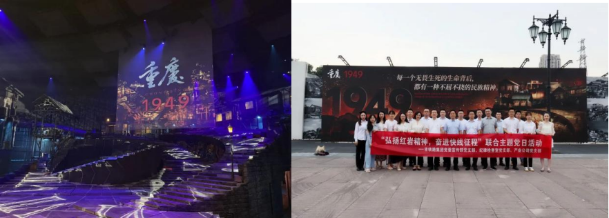 活動(dòng)簡(jiǎn)介:為深入貫徹黨的十九屆六中全會(huì)和市第六次黨代會(huì)精神,落實(shí)《重慶市紅色資源保護(hù)傳承規(guī)定》,推進(jìn)黨史學(xué)習(xí)教育常態(tài)化長(zhǎng)效化,發(fā)揚(yáng)光榮革命傳統(tǒng),激發(fā)黨員同志的愛(ài)國(guó)主義情懷,6月17日,紀(jì)律檢查室黨支部聯(lián)合黨委宣傳部黨支部、產(chǎn)業(yè)公司黨支部開(kāi)展“弘揚(yáng)紅巖精神,奮進(jìn)快線(xiàn)征程”主題黨日活動(dòng),觀看了歷史舞臺(tái)劇《重慶·1949》?;顒?dòng)成效:此次主題黨日活動(dòng)以“黨建+黨史學(xué)習(xí)教育”相融合的方式,通過(guò)觀看紅色舞臺(tái)劇《重慶·1949》,給全體黨員上了一場(chǎng)生動(dòng)鮮活的革命教育課,讓大家接受了一次紅色思想的洗禮,引導(dǎo)黨員們?cè)凇皡⑴c、體驗(yàn)、思考”中熟悉黨的歷史,堅(jiān)定理想信念,激發(fā)愛(ài)國(guó)熱忱和歷史責(zé)任感,并進(jìn)一步凝聚黨員團(tuán)結(jié)干勁,在新時(shí)代開(kāi)啟新征程、實(shí)現(xiàn)新作為,用革命精神激勵(lì)全體黨員干部胸懷大局、嚴(yán)守紀(jì)律、恪盡職守。
