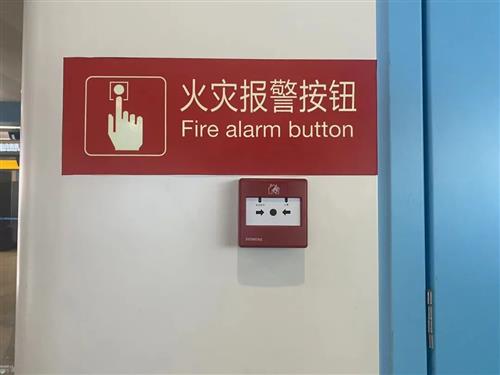在車站站臺(tái)和站廳區(qū)域設(shè)置有火災(zāi)報(bào)警按鈕,當(dāng)發(fā)生火災(zāi)時(shí),可根據(jù)提示按壓按鈕。