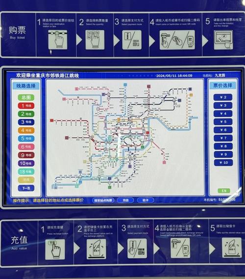TVM,全稱(chēng)叫做“自動(dòng)售票機(jī)”。TVM最下方的第一個(gè)選項(xiàng)為“搜索站點(diǎn)購(gòu)票”,輸入站點(diǎn)首字母即可快速鎖定目的站點(diǎn),(例如:目的站點(diǎn)為“小什字”即輸入XSZ)。第二個(gè)選項(xiàng)為“充值”,選擇現(xiàn)金、微信、支付寶進(jìn)行支付。第三個(gè)選項(xiàng)是“驗(yàn)卡”,可以快速查詢(xún)卡內(nèi)余額。主屏幕上還呈現(xiàn)有重慶市完整的軌道交通線(xiàn)路圖,可縮小放大,便于大家更好地規(guī)劃出行路線(xiàn)。