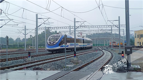 6月22日15時(shí),伴隨著一聲清脆的鳴笛,身披藍(lán)色外衣的電客車停靠在銅梁西站,在一片歡呼聲中,重慶市域鐵路璧銅線熱滑試驗(yàn)圓滿完成。